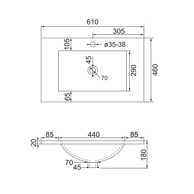 Umývadlo je určené pre nábytok, nemožno inštalovať samostatne na stenu.